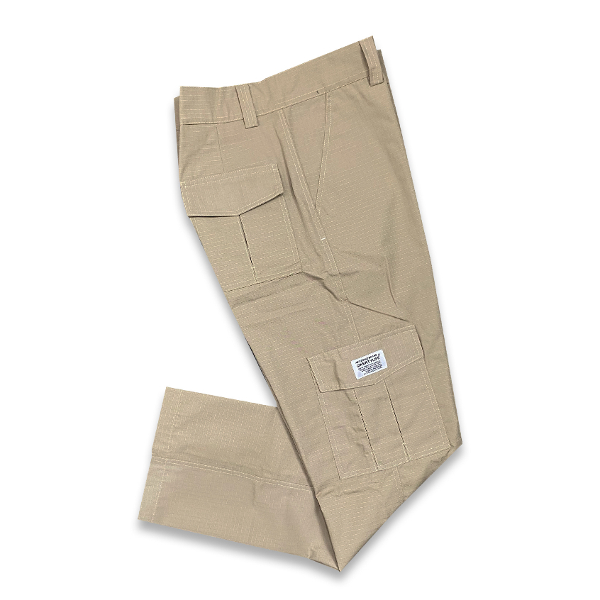 Qwertylife Long Cargo Reguler Loose Unisex - Cream Khaki
