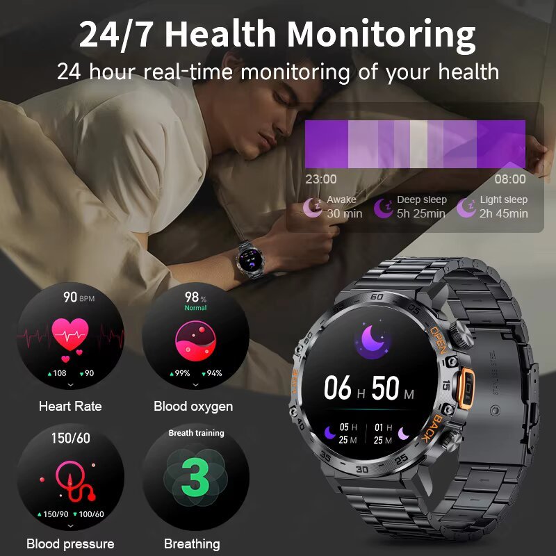 LIGE Jam Tangan Pintar Asli Dengan Senter LED Sentuhan Penuh Pelacak Olahraga Kebugaran Monitor Kesehatan Detak Jantung