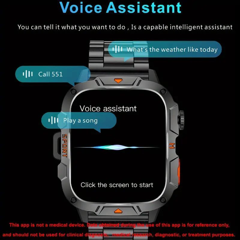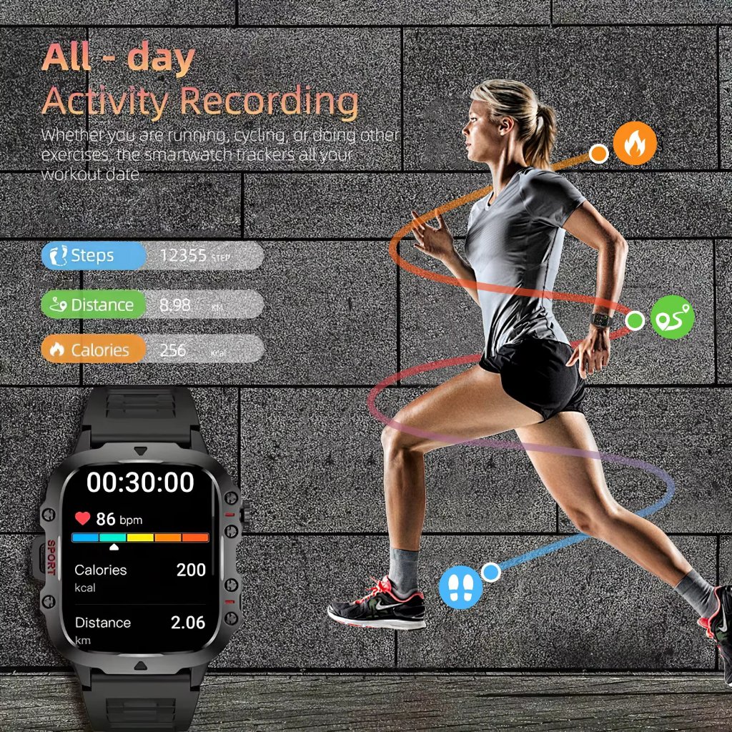 LIGE Jam Tangan Pintar Baru Pria Asli Layar HD 1,96" dengan Senter UV LED 100+ Olahraga Tahan Air Baterai 420MAh Jam Tan