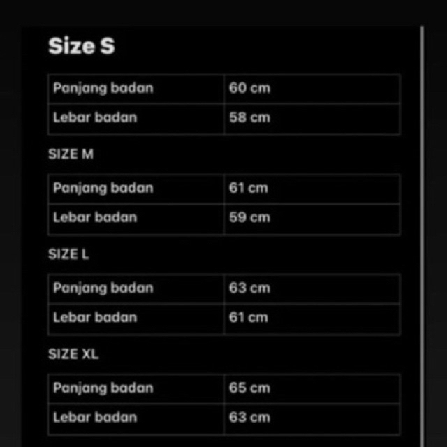 S, M, L, XL