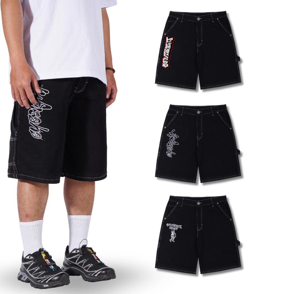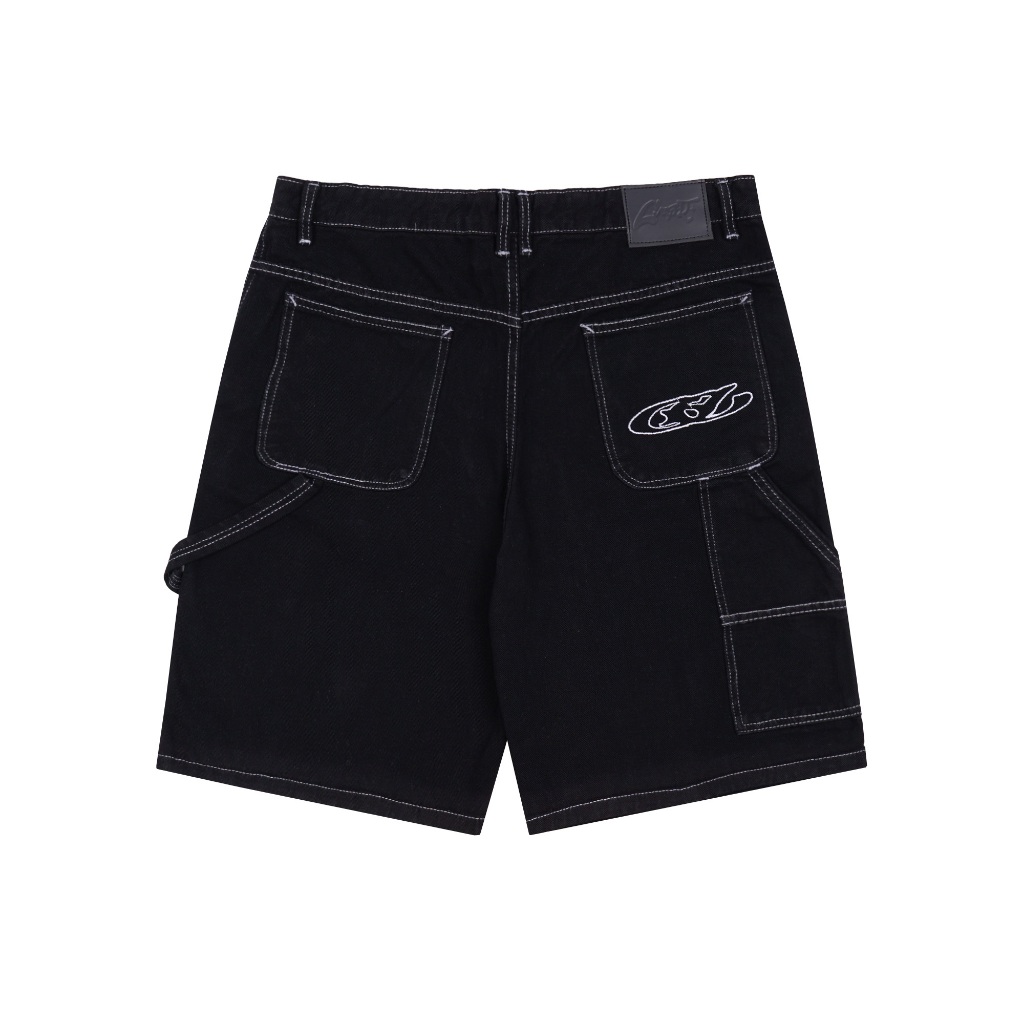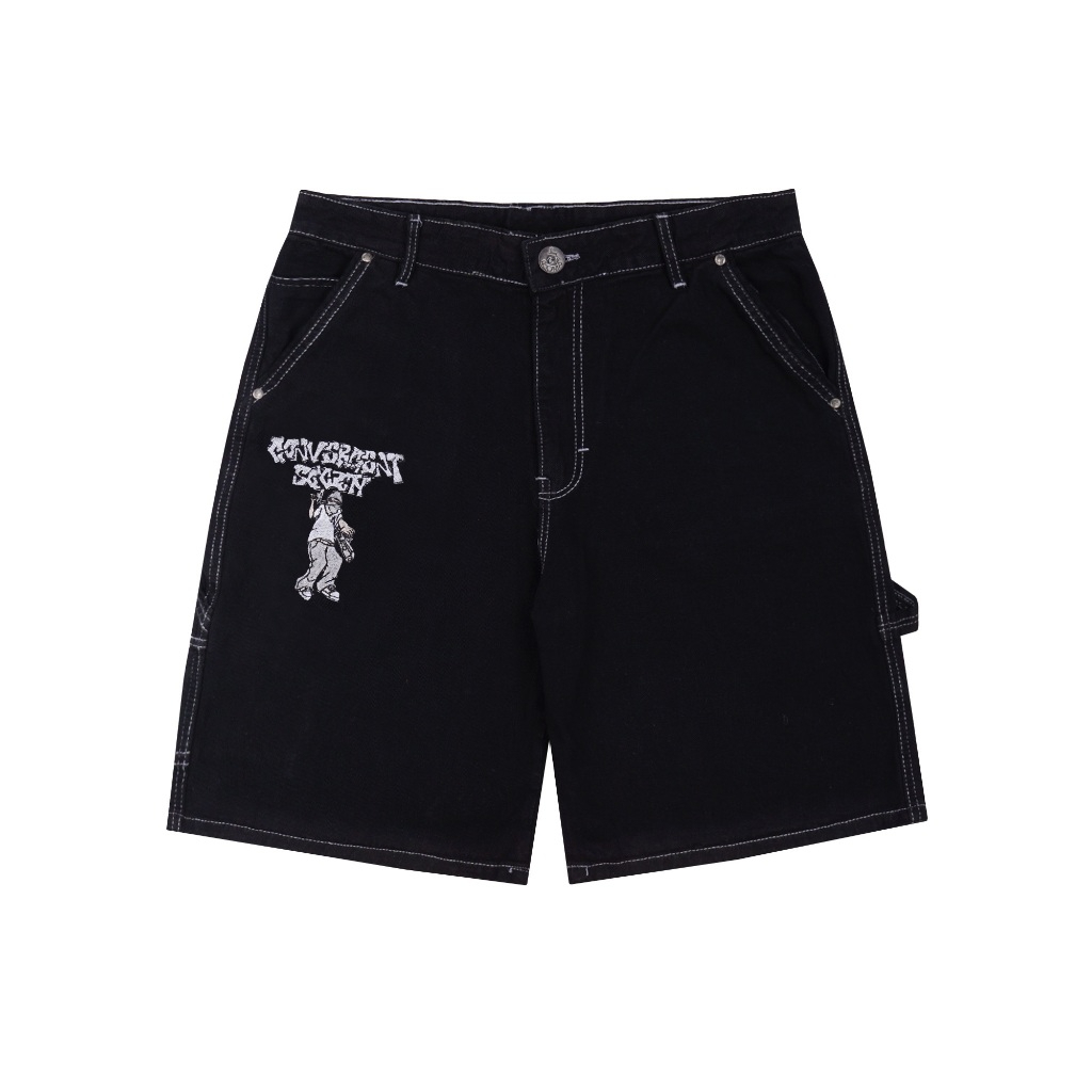 CONVERGENT - JORTS SHORT PANTS DENIM BORDIR CELANA PENDEK HITAM UNISEX