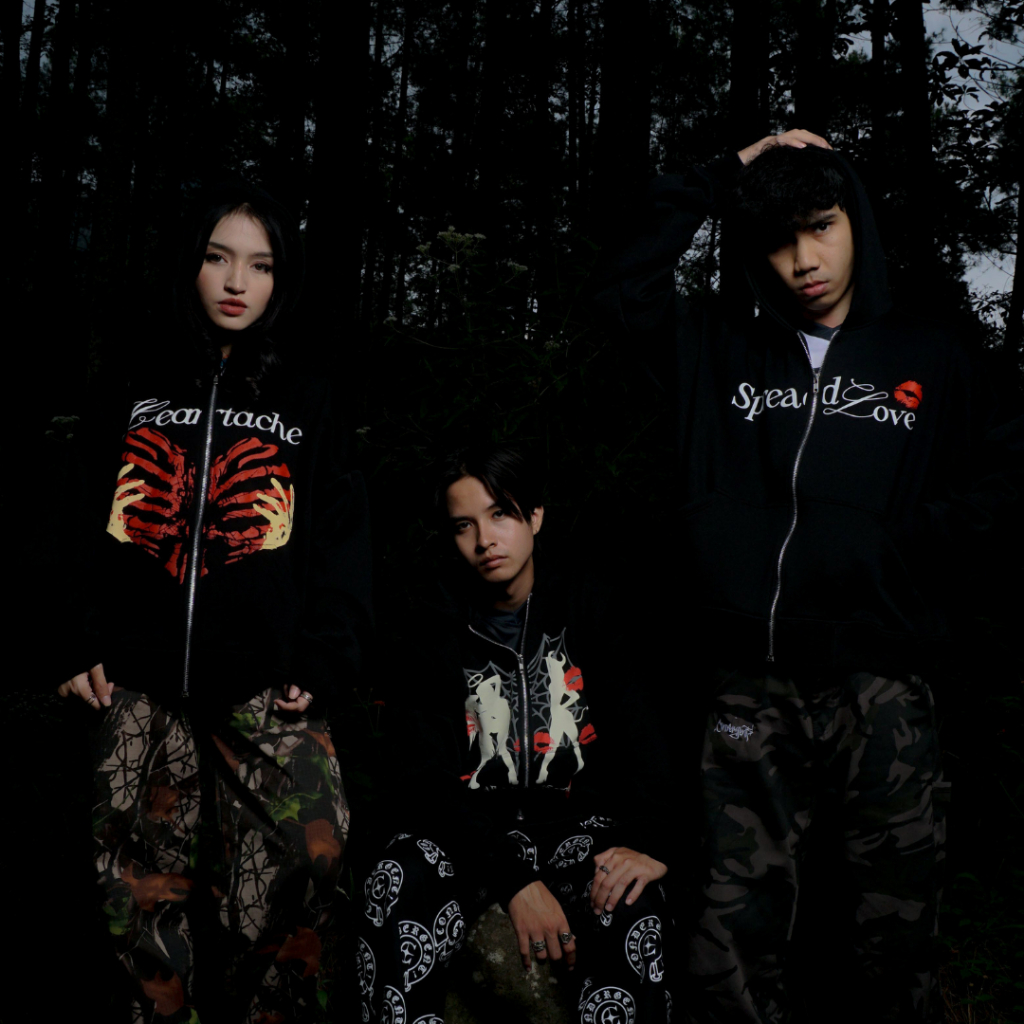 Convergent Boxy Zip Hoodie Heartache - Black Hoodie Pria wanita unisex