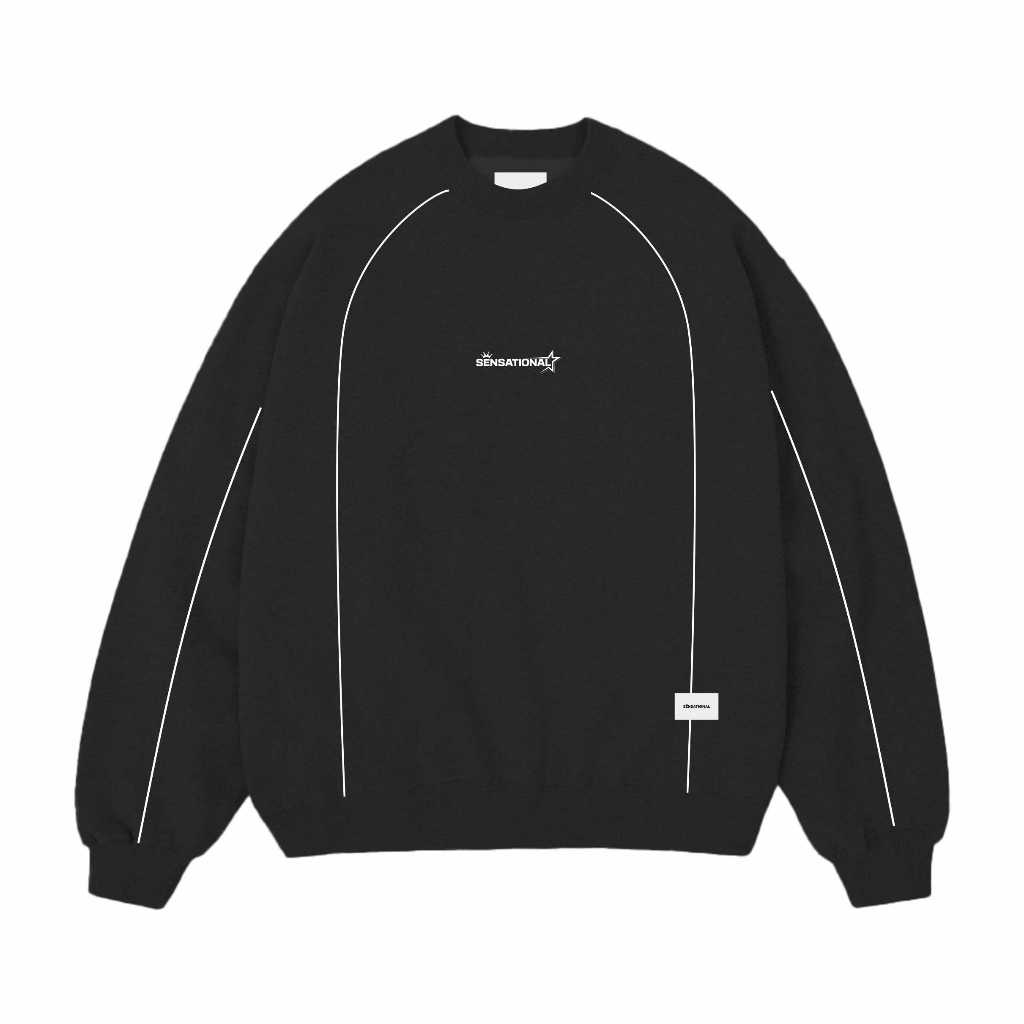 SENSATIONAL Line Crewneck Boxy Oversize Unisex Fleece Cotton 280gsm Hitam