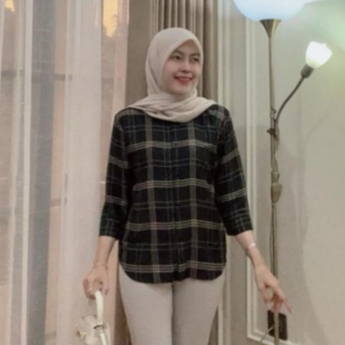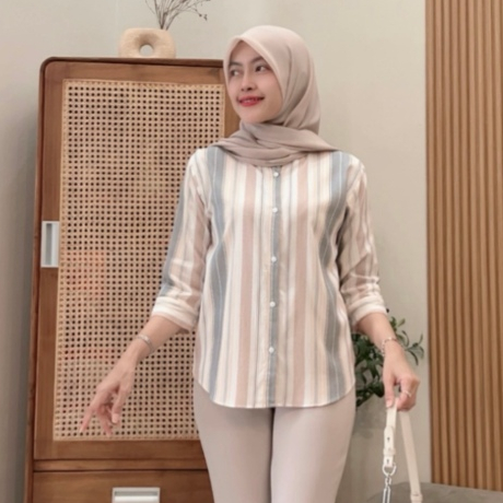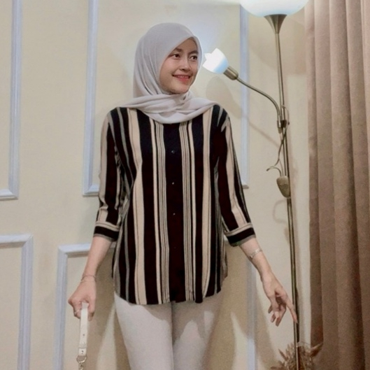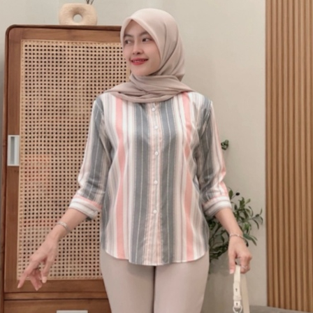 Kemeja Rayon Wanita Motif Oversize Daily Salur Rayon Jumbo Lengan 7/8
