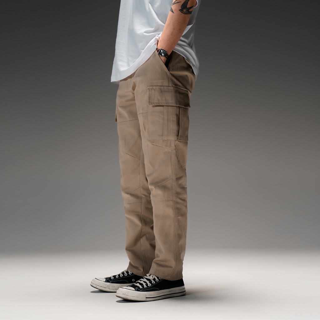 Mickout Slava Cargo Pants - Celana Panjang Pria Rigid Cotton Straight Fit - Khaki