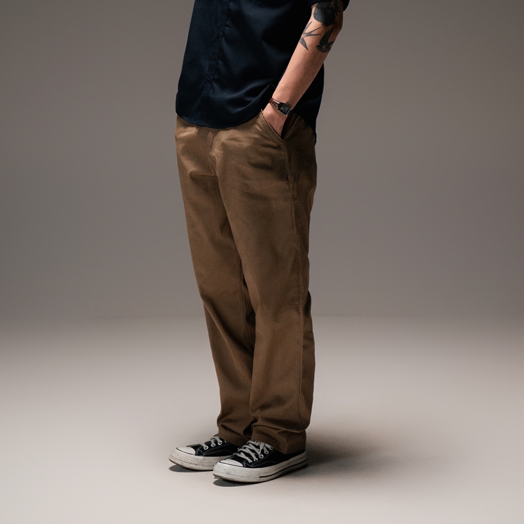 Mickout Wiggy Chino Pants - Celana Panjang Pria Stretch Cotton Loose Fit - Coffee