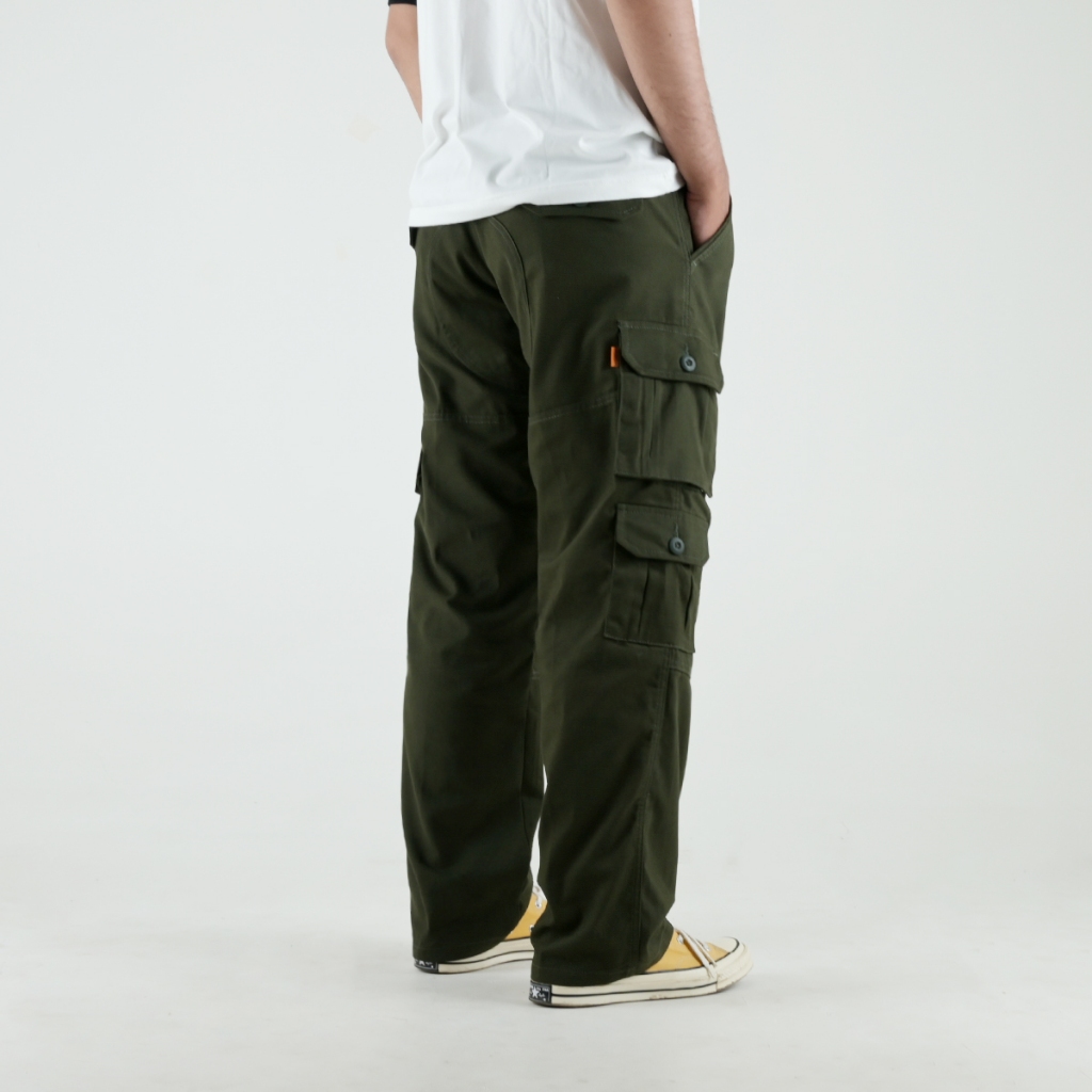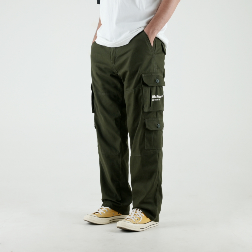 Mickout Tyst Cargo Pants - Celana Panjang Pria Rigid Cotton Relaxed Fit - Army