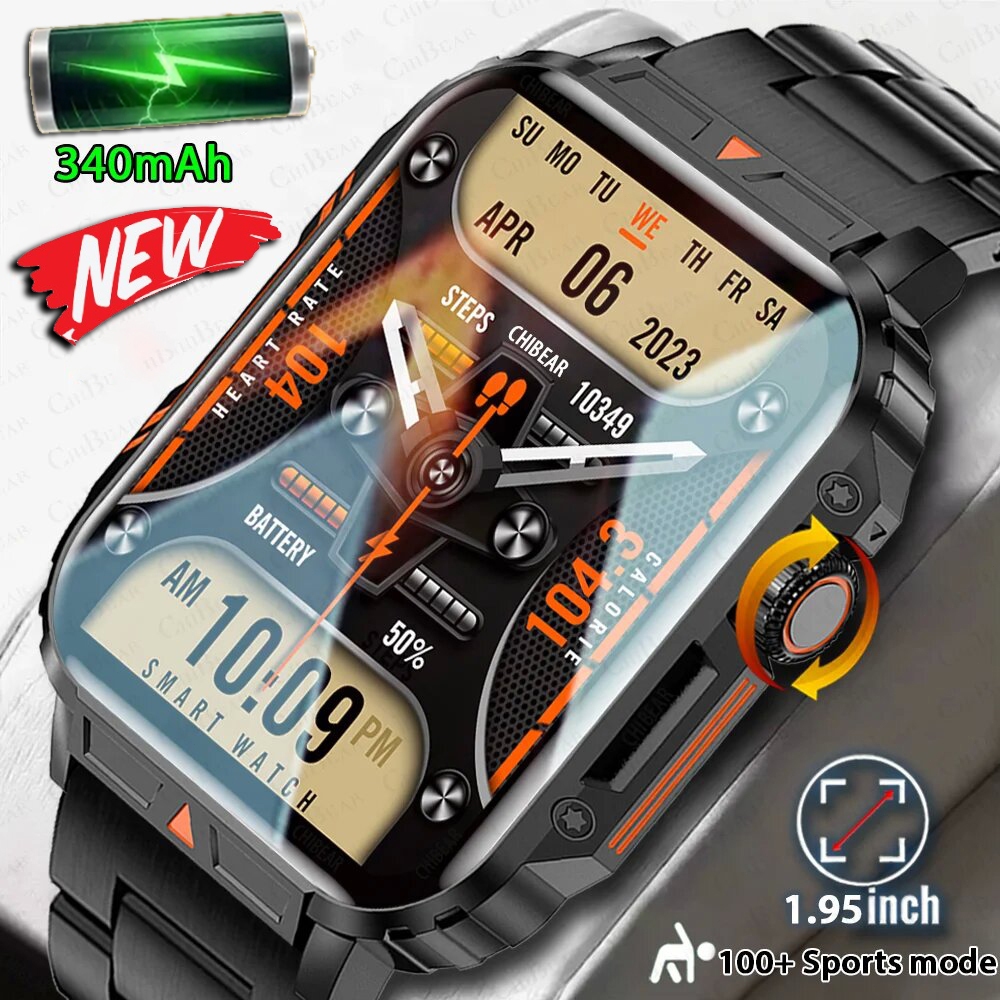 LIGE Jam Tangan Pintar Olahraga 1.95 Sentuh Penuh Luar Ruangan 100+ Baru Jam Tangan Pintar Panggilan Bluetooth Pria Asli