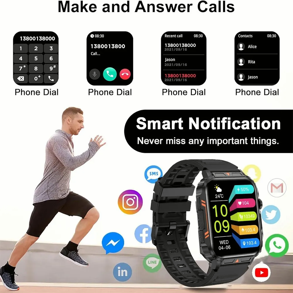 LIGE Jam Tangan Pintar Olahraga 1.95 Sentuh Penuh Luar Ruangan 100+ Baru Jam Tangan Pintar Panggilan Bluetooth Pria Asli