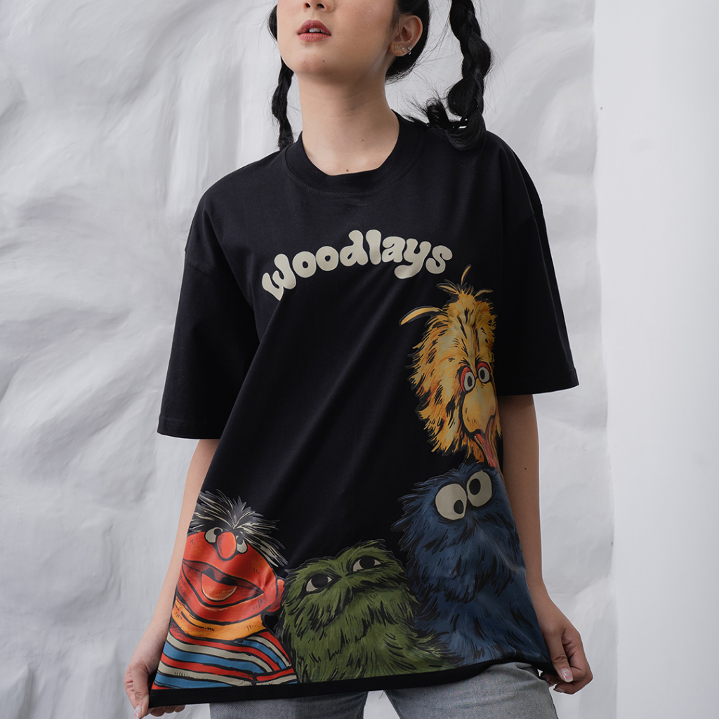 Woodlays Kaos T-Shirt Oversize Black Sesame Street