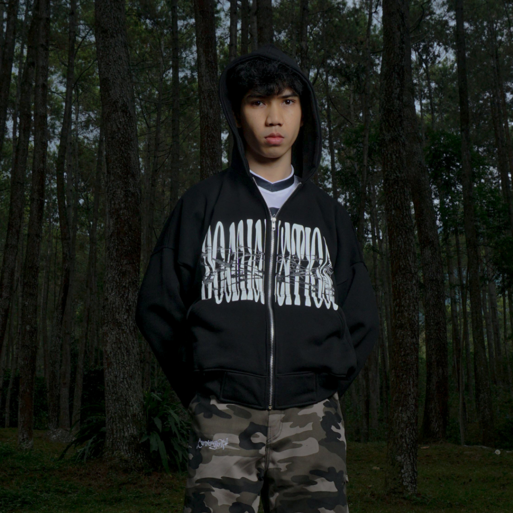 Convergent Boxy Zip Hoodie Domination - Black Hoodie Pria wanita unisex