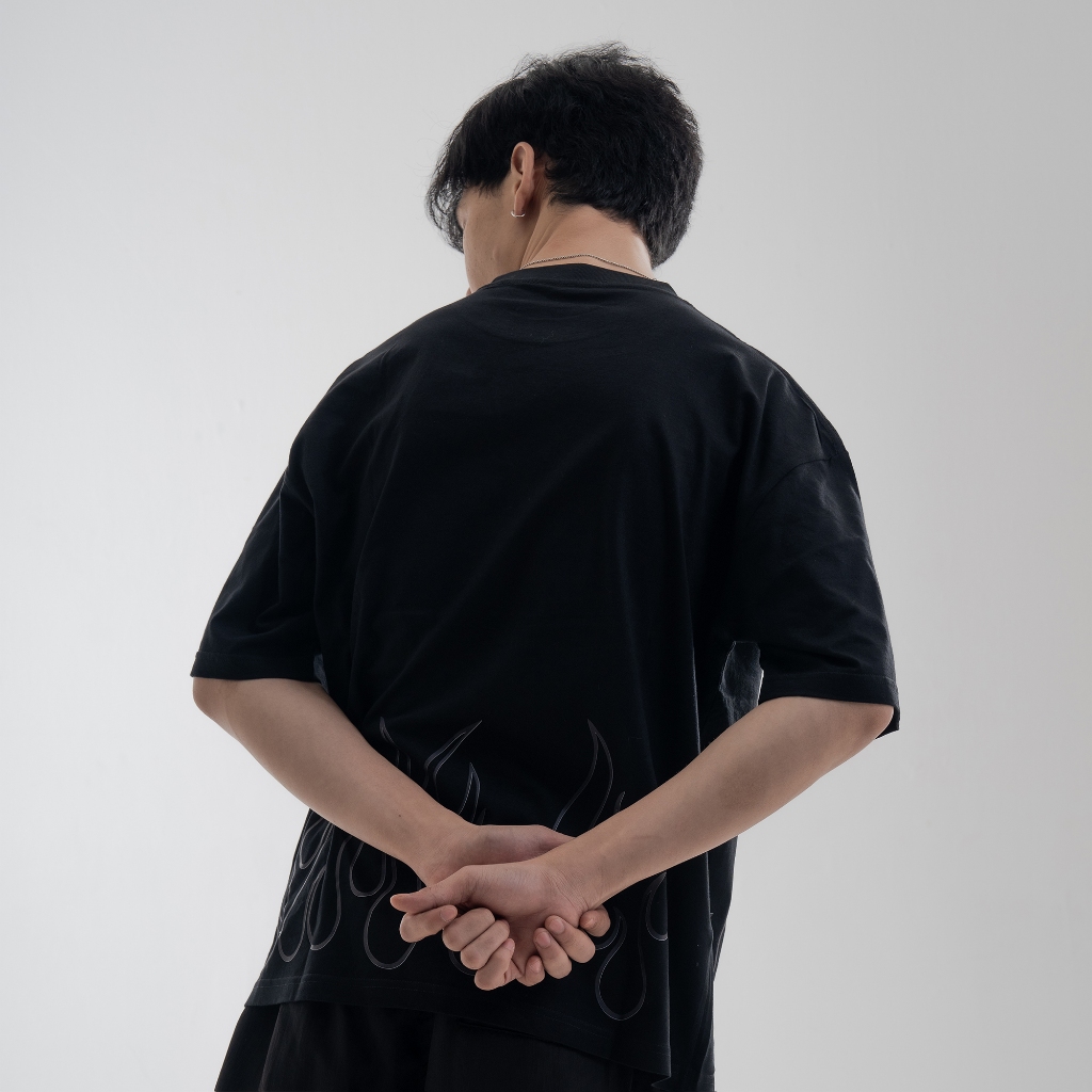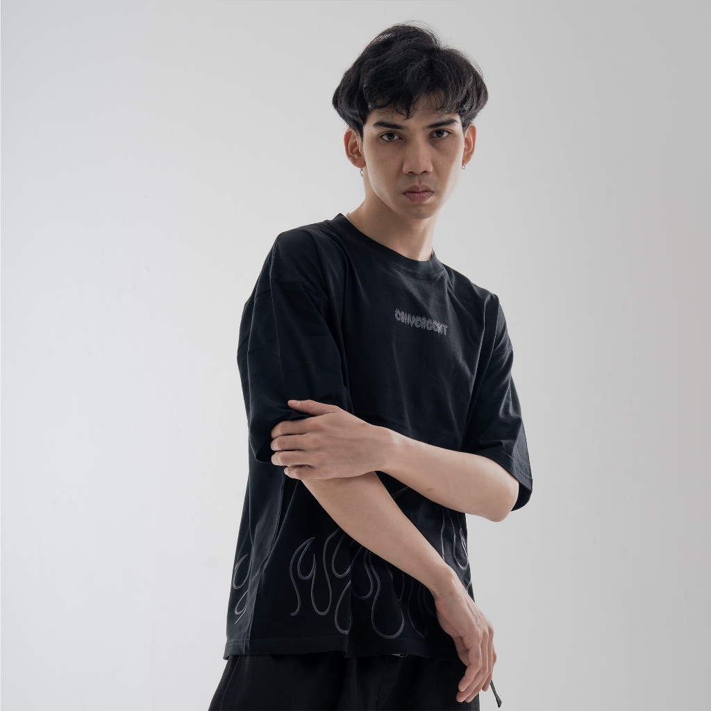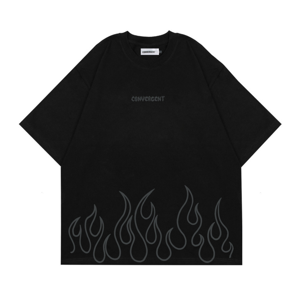 Convergent - fire black Baju Kaos Distro T Shirt Hitam Oversize