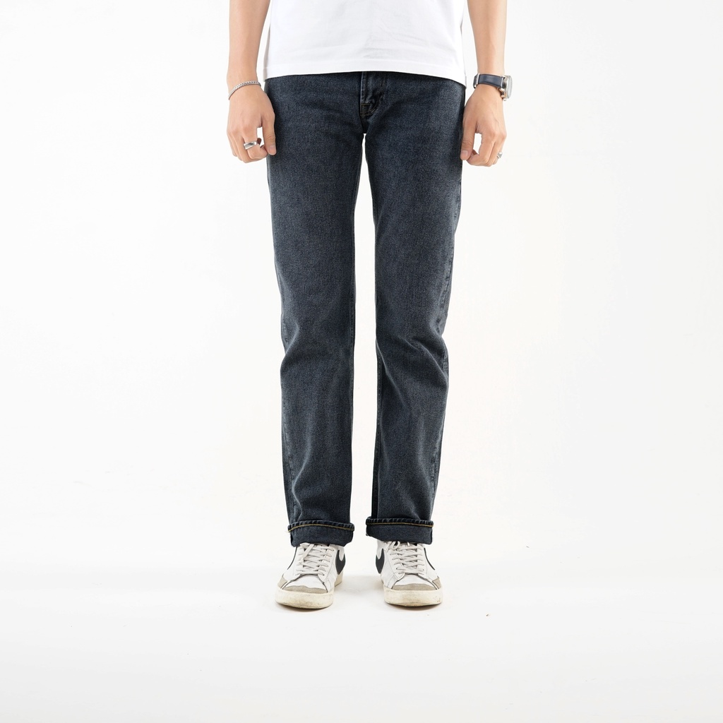 Volkvog Jeans Berlin Celana Panjang Washed Denim Pria Slim Straight Abu Gelap