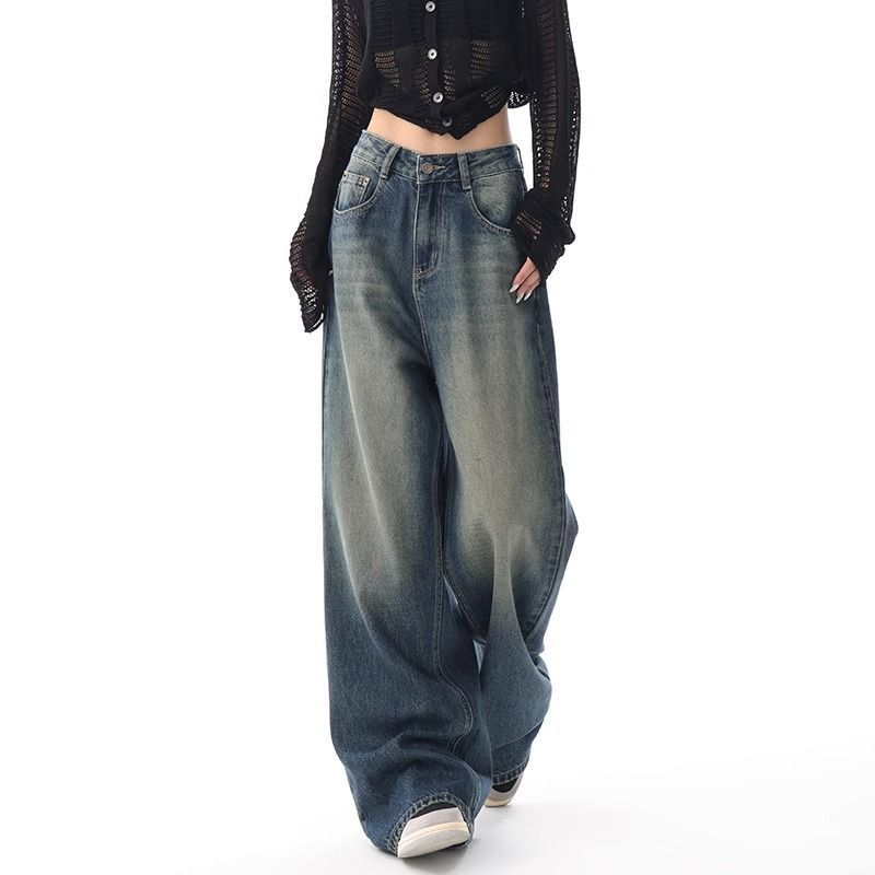 KATERMEN Jeans Ukuran Besar-Jeans biru-Jeans wanita-Jeans longgar kaki lebar-Jeans pinggang tinggi