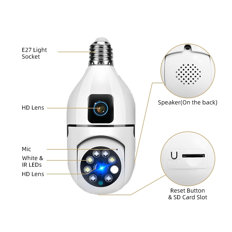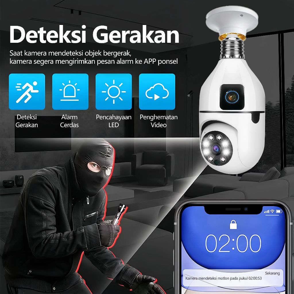 Franwell CCTV E27A V380 pro Lampu Bohlam Dual Lens HD Wifi PTZ Audio Dua Arah Night Vision Keamanan Rumah Kanto
