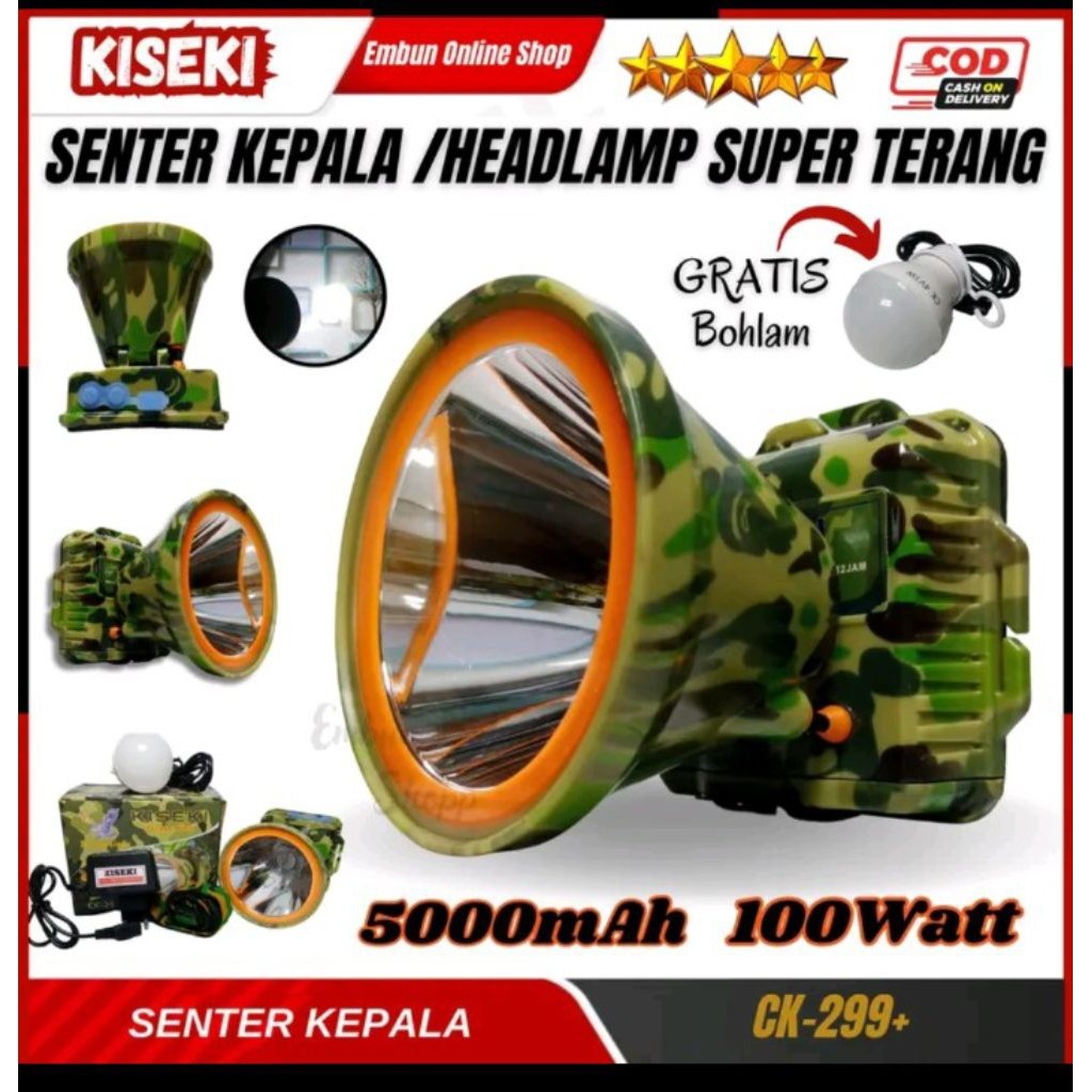 HEADLAMP Senter Kepala LED Super Terang Kiseki Loreng King 100 Watt CK-299 Cahaya Putih - Termurah