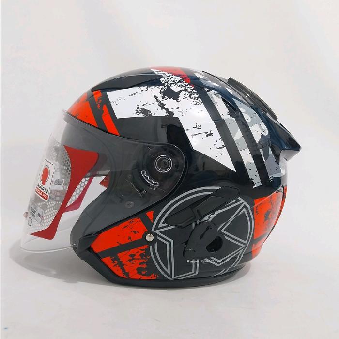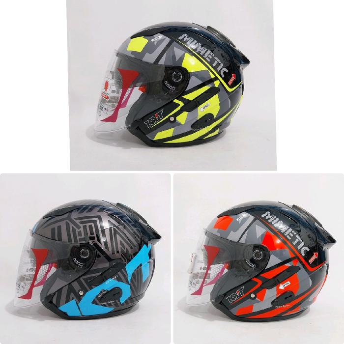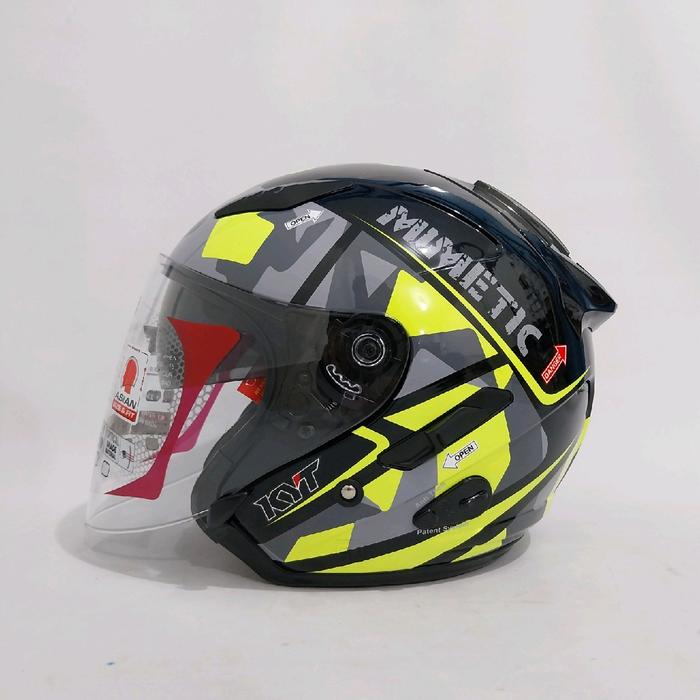 Helm KYT Halfface doublevisor KYT GALAXY FLAT R motif 2 Kaca Motorcycle - #4 black yellow, M