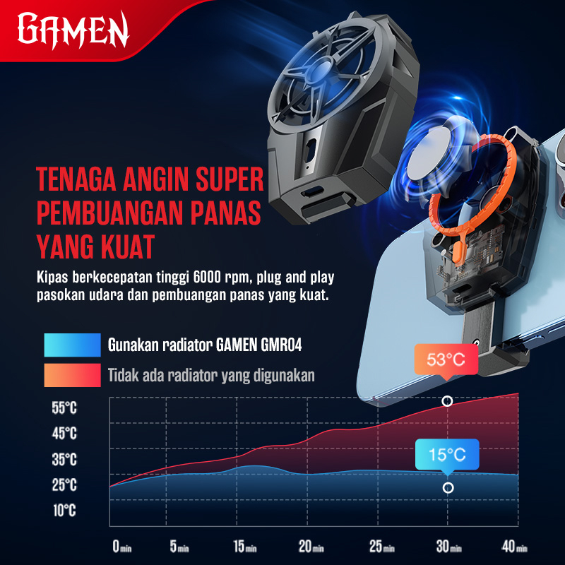 Fan Cooler HP Gaming Kabel 6000 RPM Kipas Pendingin HP Dengan Klip Penjepit Silent Fan Pendingin HP-GAMEN GMR02S