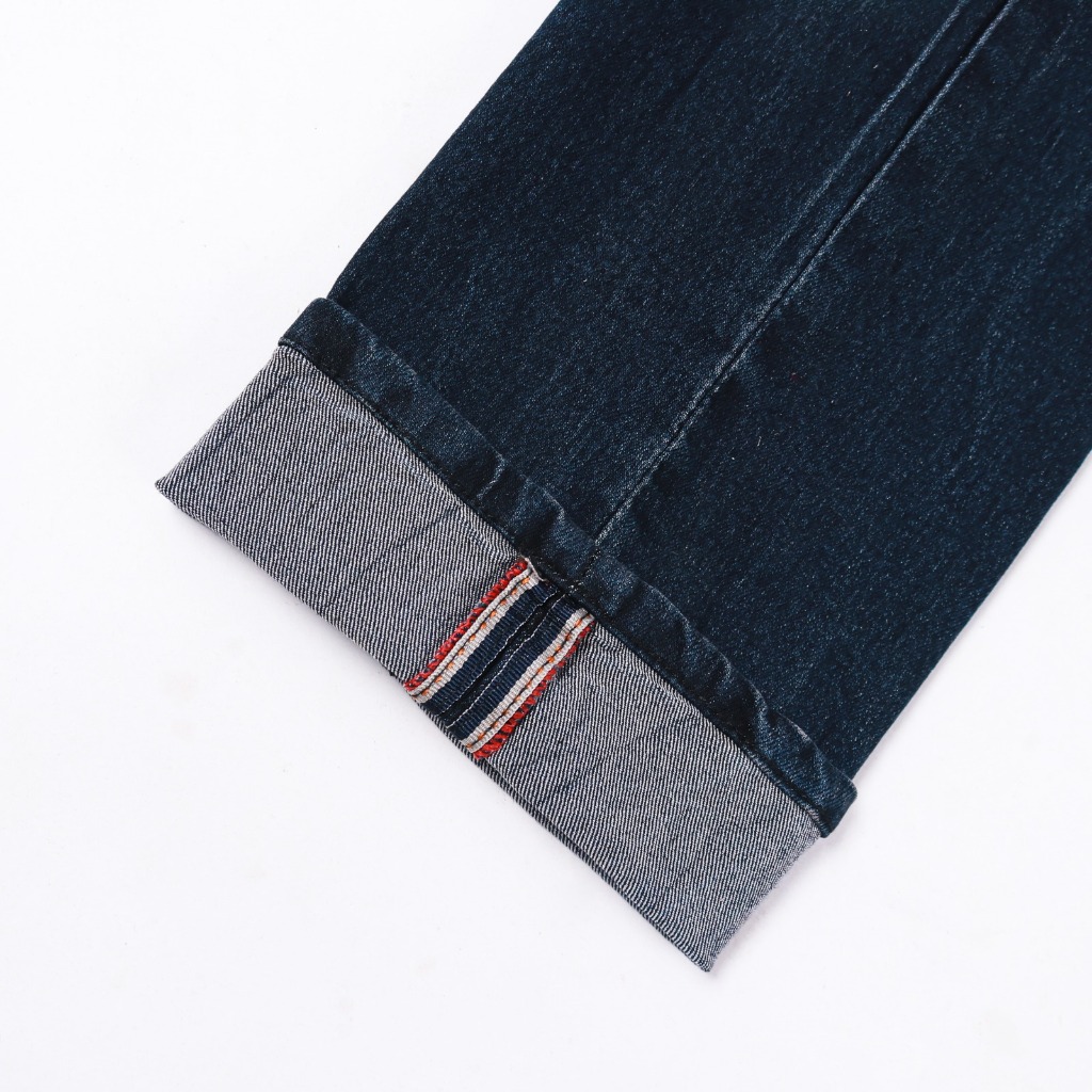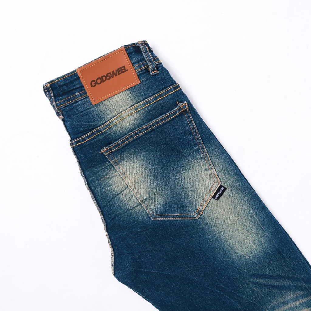GodsWeel Celana Jeans Reguler Pria Standar Panjang Stretch Meral Aksen Selvedge Biotink