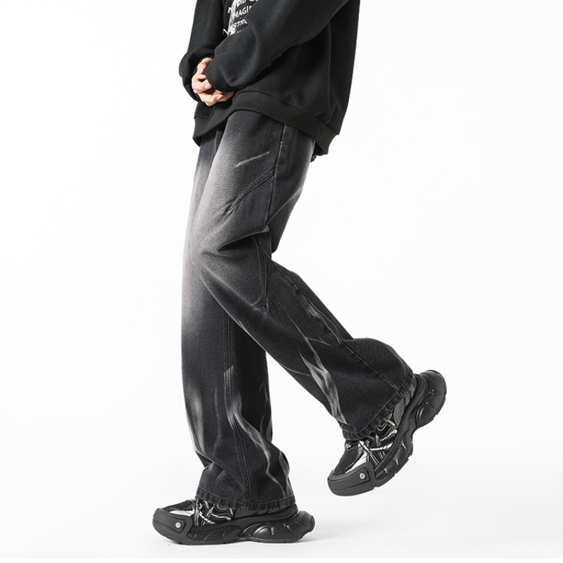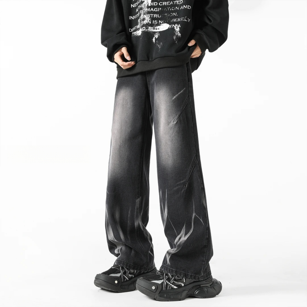 Tamp-X Oversize Baggy Celana Jeans Pria Jeans Petir Skena Hitam Denim Jumbo Loose Jeans Korean Style Kulot Straight Retro