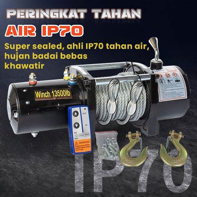✨Garansi 3 Tahun✨Electric Winch 6.5ton 13500lbs Top Speed 12V/24V IP70 Tali Sling Baja Remote Control Tali Derek Mobil Offroad /Electric Hoist 27m 10mm Power Kecepatan Tertinggi Kekuatan 4000w HSL