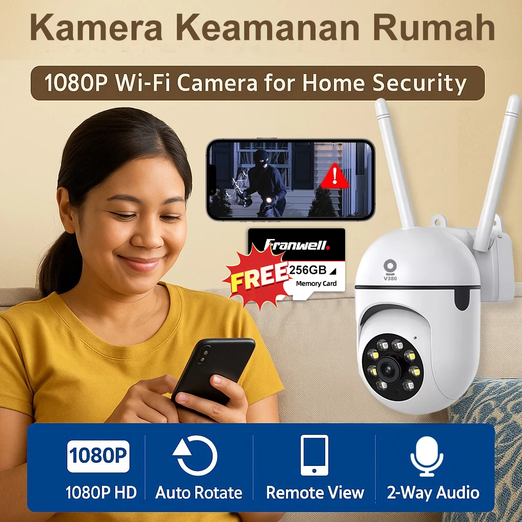 CCTV V380 Pro Y33 cctv wifi jarak jauh lewat hp Night Vision Rumah Kantor Outdoor Waterproof Gratis Ongki