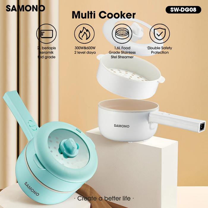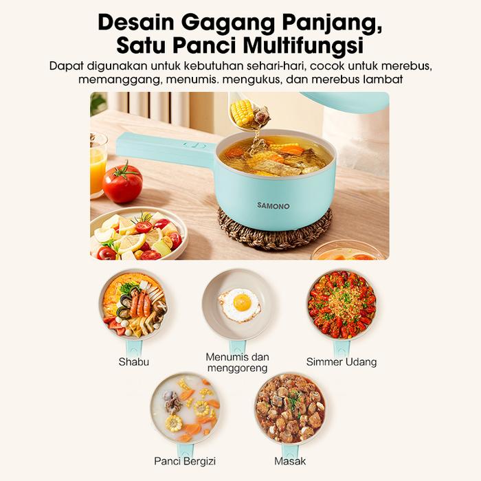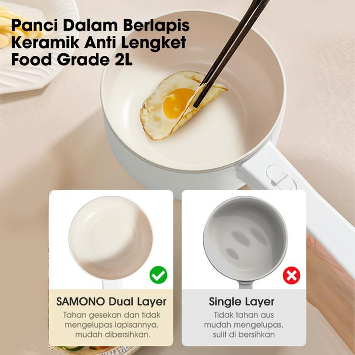 SAMONO 2L Panci Listrik Serbaguna Multi Cooker Anti Lengket 300W/600W Dual Power Food Grade Free Steamer SW-DG08 Kabel