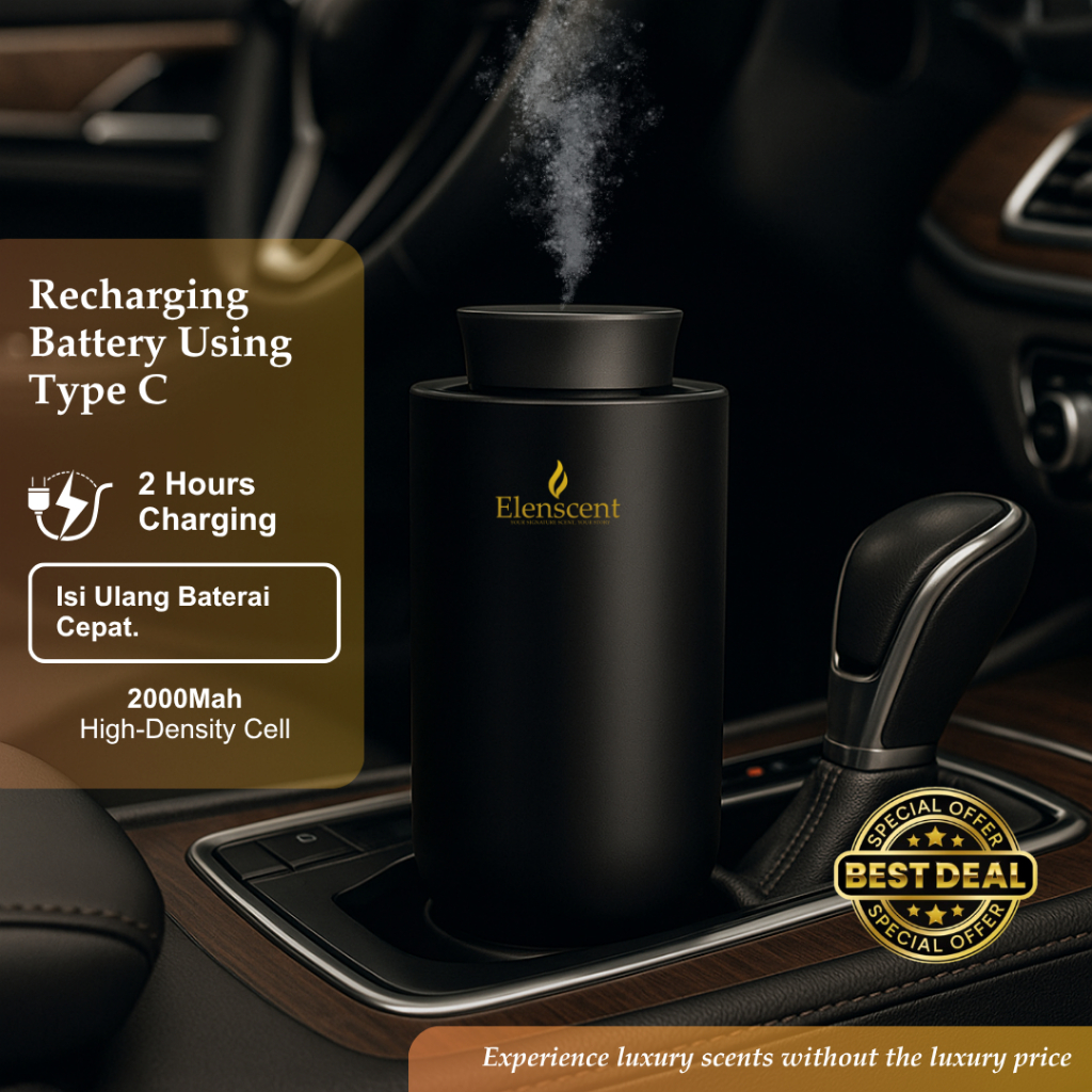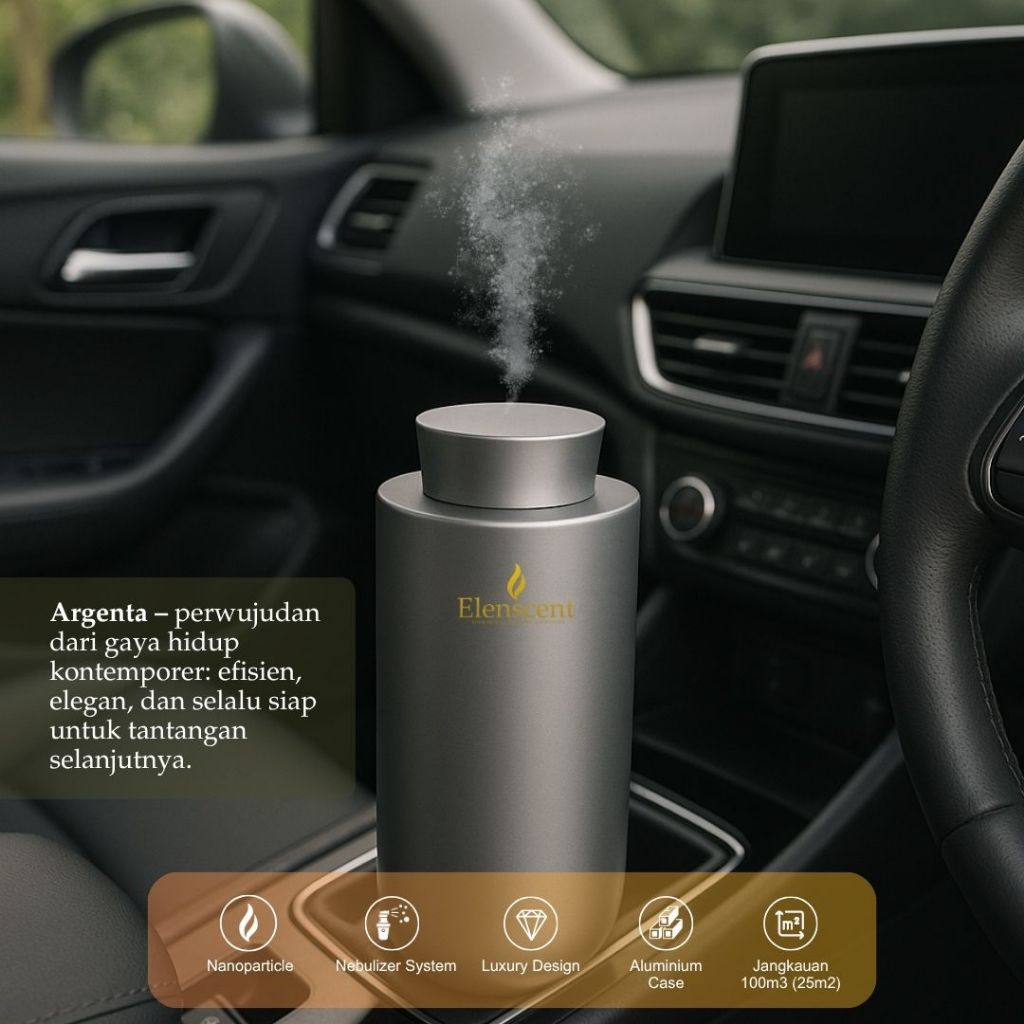 Elenscent Scent Diffuser Pro Premium Waterless Pengharum Ruang Mobil USB C Recharge Metal Solid