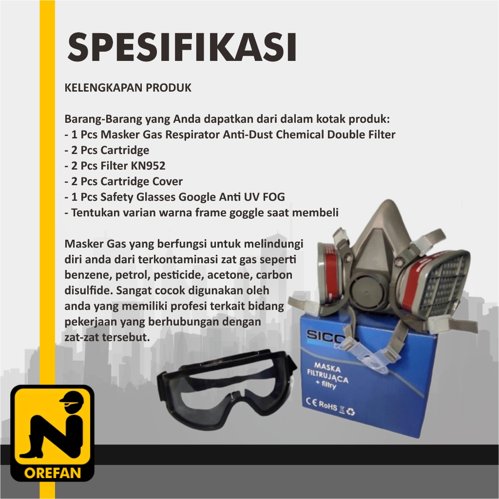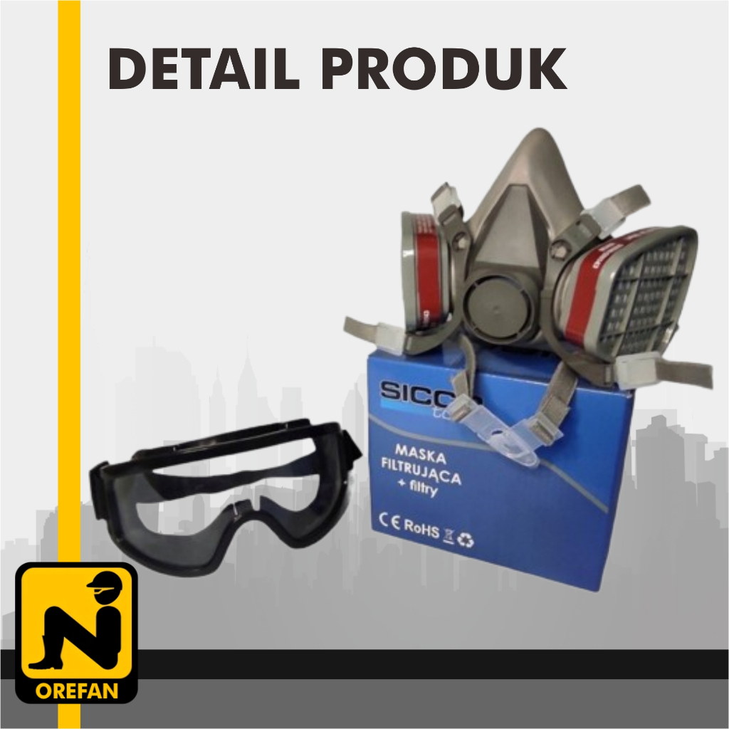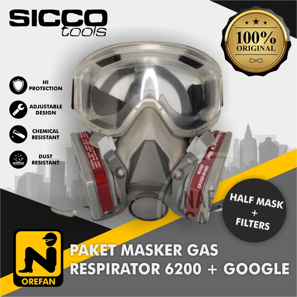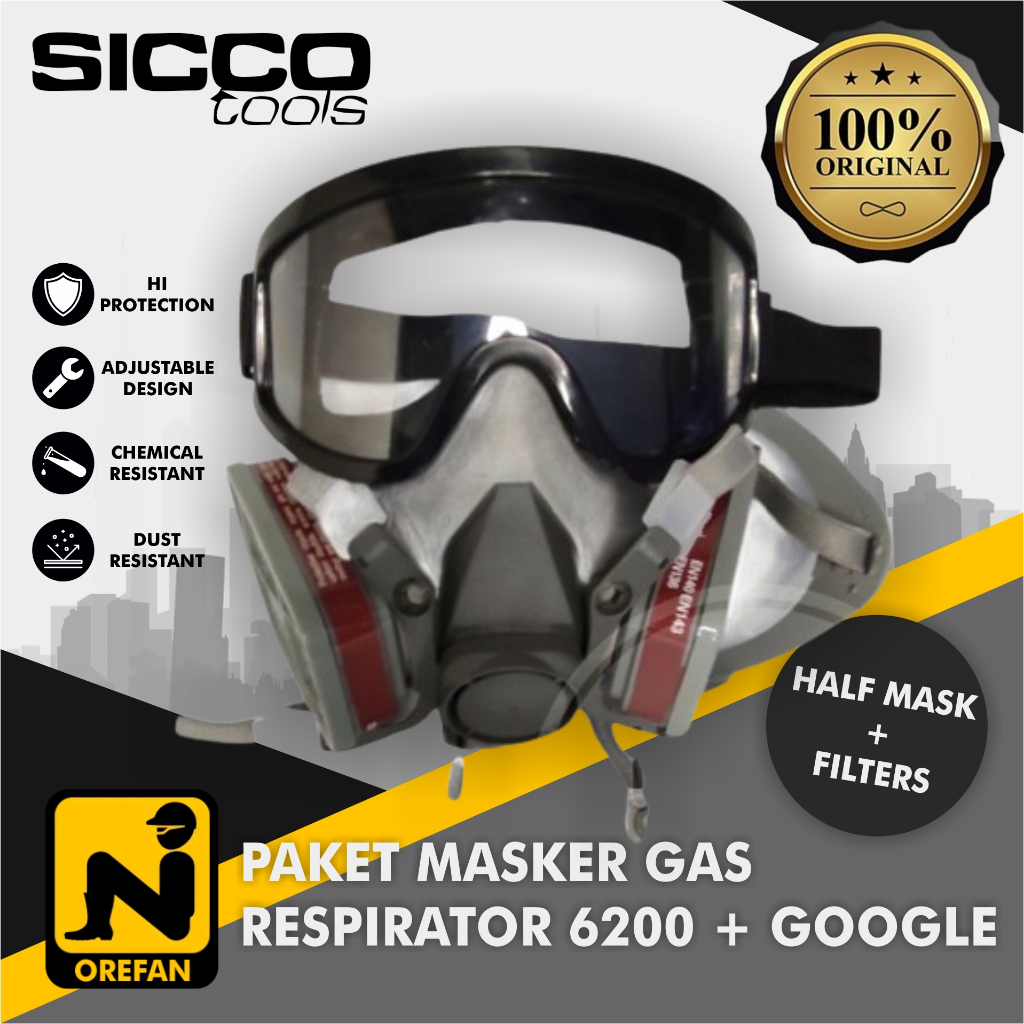 MASKER RESPIRATOR GAS MASK 6200 DAN GOGGLE FULL FACE