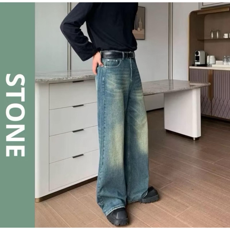 Celana Jeans oversize Gombrong Pria Hitam Wisker Loose Denim Baggy Pants Korean Style - Keren, Cowok Cewek, Skena - Fit, Panjang, (PRIA WANITA) Original