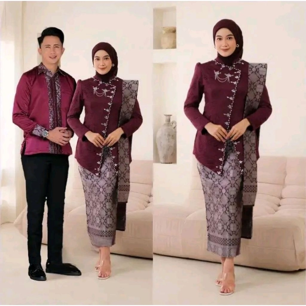 Kebaya Janggan Payet Couple Modern Kebaya Wisuda Set Tunik Lamaran Tunangan Batik Baju Kondangan Terbaru setelan kebaya batik brukat janggan elegan setelan kebaya batik couple janggan burgundy