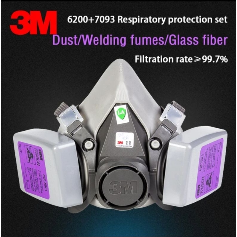 3M 6200 Masker Gas Respirator + 3M 7093 Cartridge Filter Complete Set