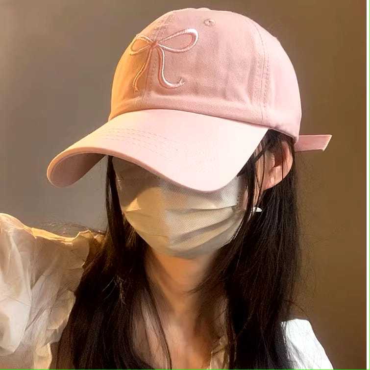 Topi Baseball Wanita Fashion Cap Bordir Pita Bow Simple Korean Look