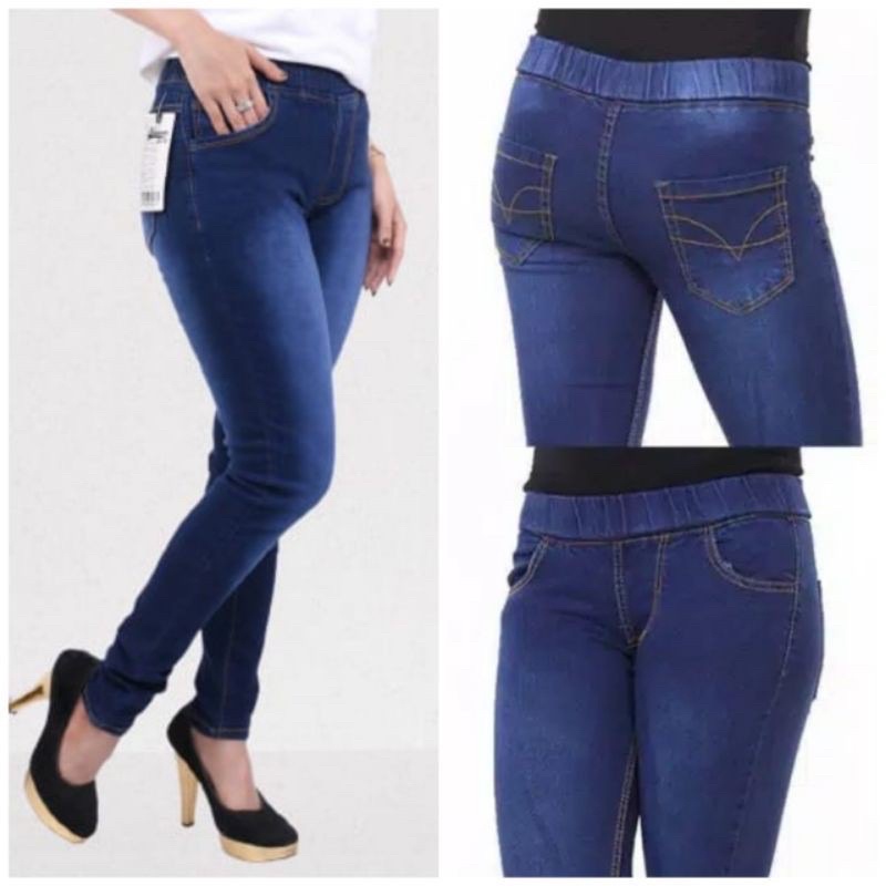 Celana Jegging Jeans Karet Pinggang Slimfit | Celana Cewek Legging