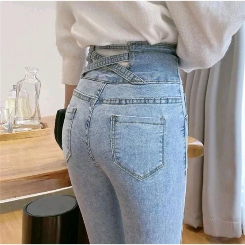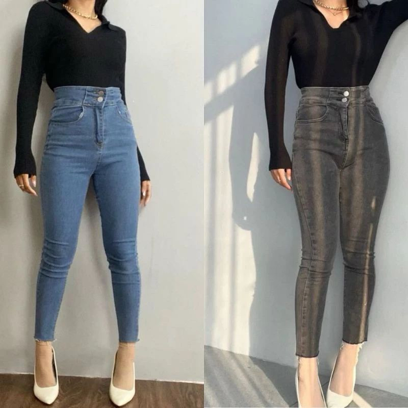 Cassandra - Celana Jeans Strech Pensil Silang Super Premium Wanita Highwaist Skinny Jeans Terbaru Kekinian
