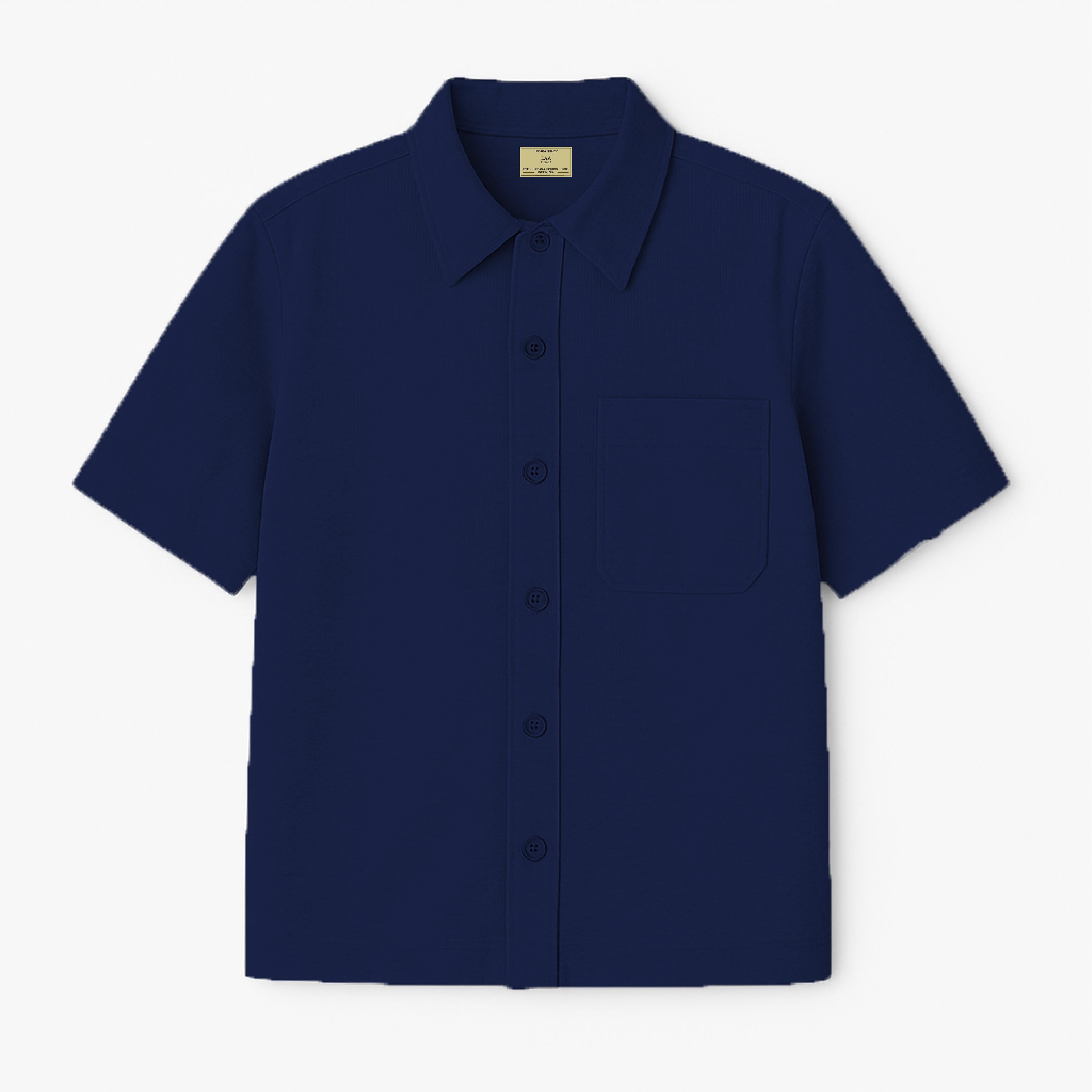 Kemeja Workshirt Kancing Kream Pria Lengan Pendek Warna Hijau Tua dengan Kantong Dada Lembut Katun America Drill Premium
