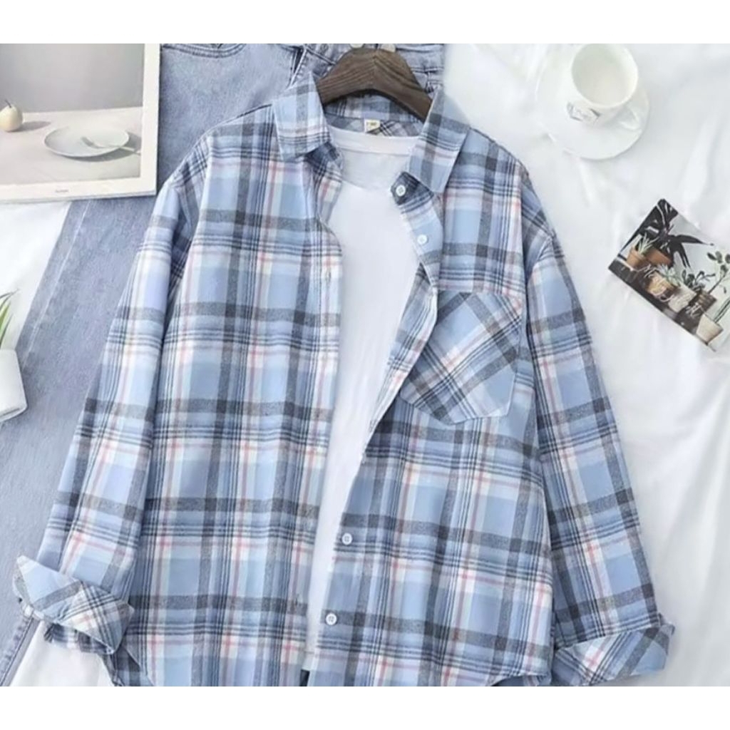 Kemeja Flanel Wanita kotak - kotak original Kemeja Wanita blue and pink