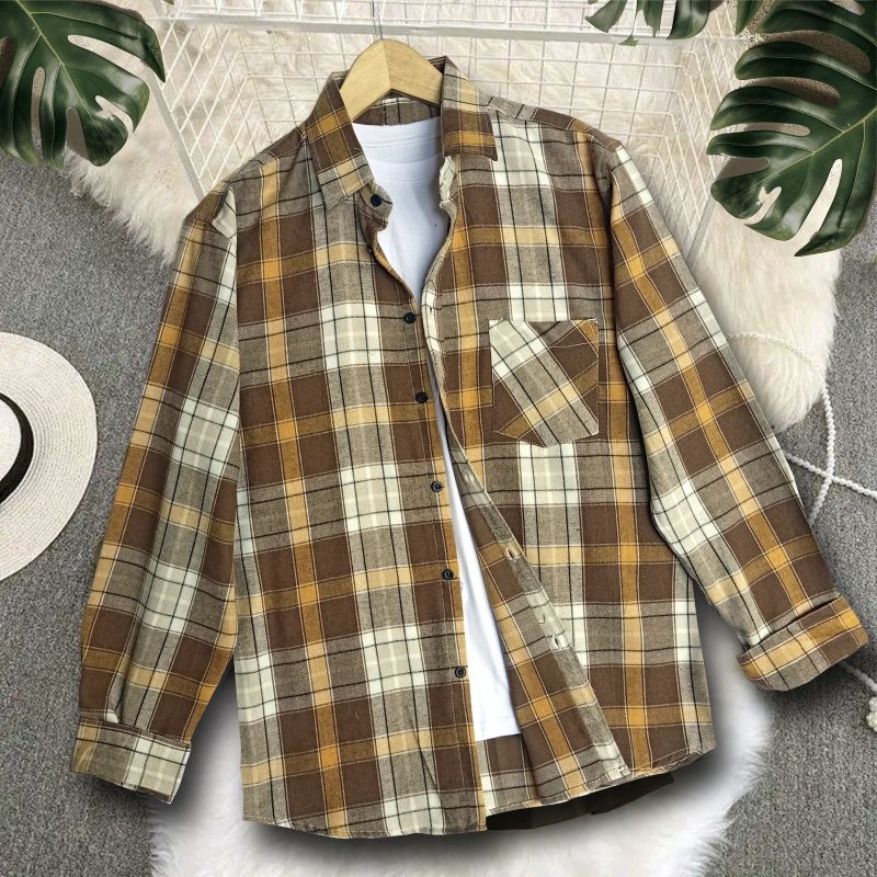 Kemeja Kotak-Kotak Lengan Panjang flanel wanita best seller