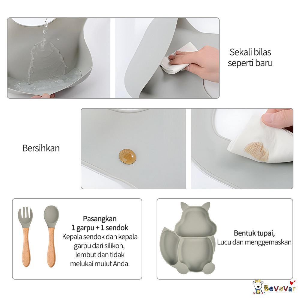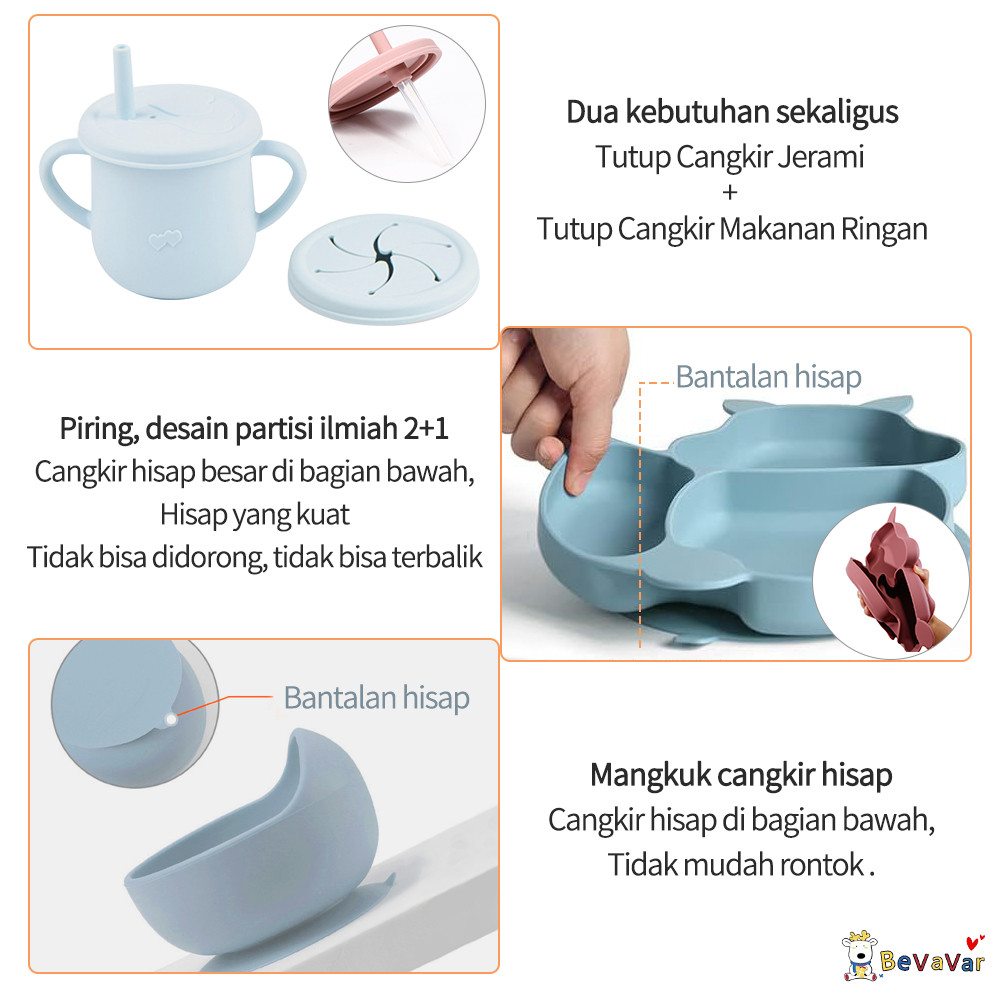 BEVAVAR 8 in 1 Tempat Makan Bayi Silicone Set / Mangkok Piring Sendok Garpu Bib Cup Silikon Peralatan Makan Bayi Set