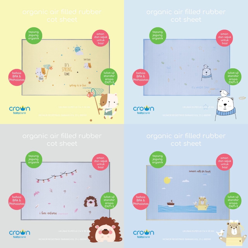 CROWN Perlak karet motif perlak snuggle printed rubber cot sheet CR3938