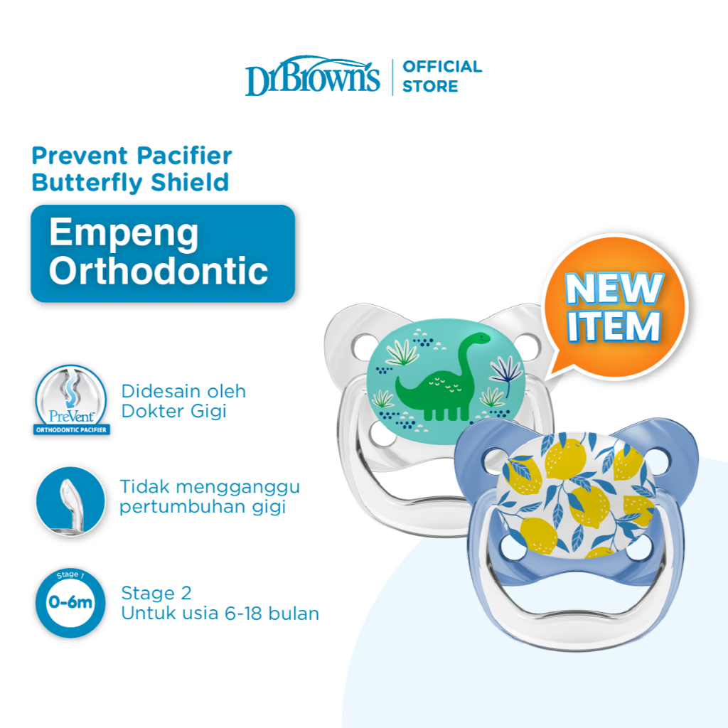 Dr.Brown's Prevent Pacifier Stage 1 / Stage 2 - 2 Pcs / Empeng Bayi / Dot