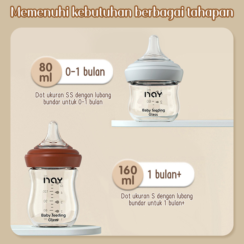 Mumystation Botol Kaca Asi 80/160ml Botol Susu Bayi Anti Kolik