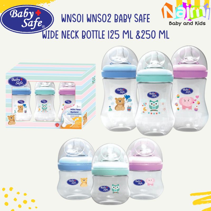 PAKET SET ISI 3 WNS01 WNS02 Baby Safe Wide Neck Bottle Karakter 125 ml 250ml Botol Susu Bayi Babysafe