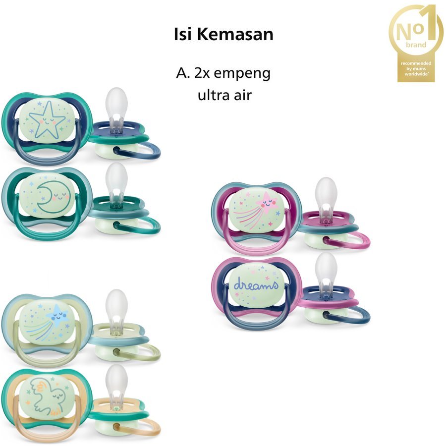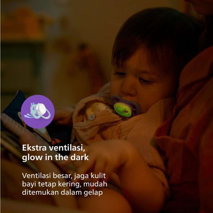 Philips Avent Soother Bayi Ultra Air Glow In The Dark - Empeng Bayi | Empeng dengan Ekstra Ventilasi | 0-6M | 6-18M | SCF376/18 SCF376/14 SCF376/13