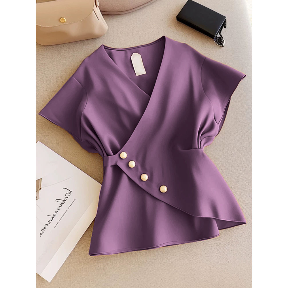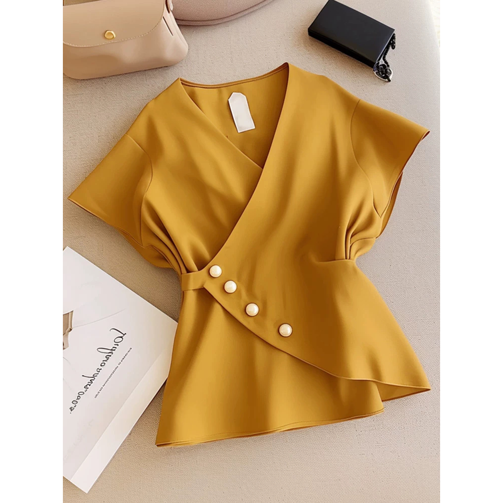 Atasan Wanita Korean Style Baju Blouse kasual Wanita Blouse Atasan Lengan Pendek Polos Gaiha Top