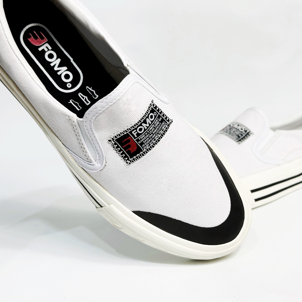 FOMO - Sepatu Slip On Remi White Black Series 36-44 Sepatu Sneakers Kasual Unisex Pria Wanita