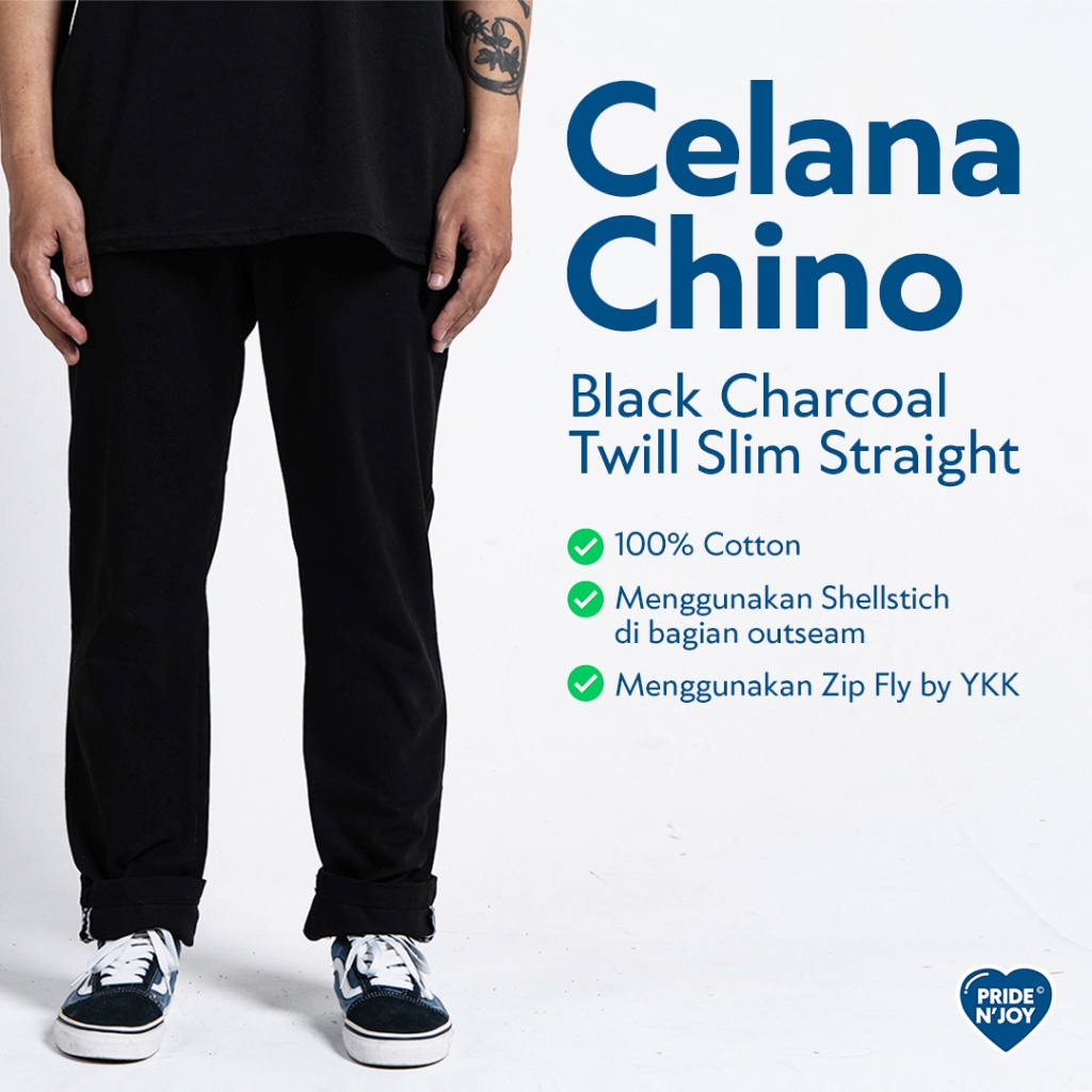 Pride N Joy - Celana Panjang Chino Black Charcoal Twill Slim Straight