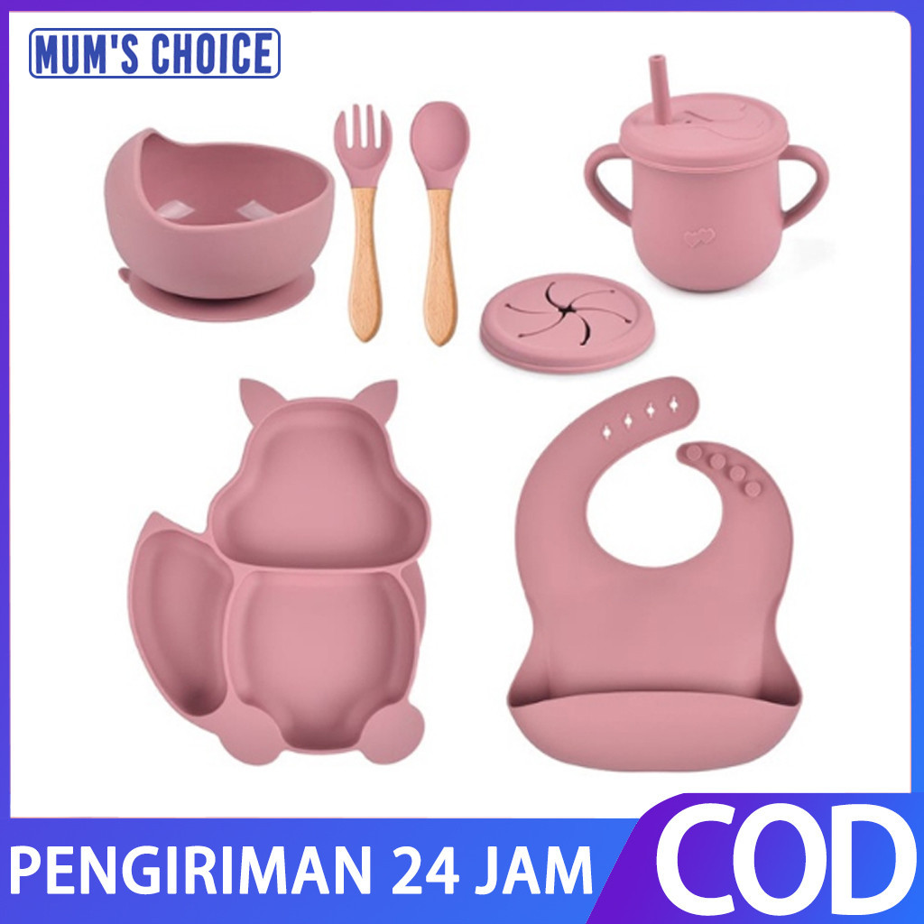 【MUM'S CHOICE】8pcs peralatan makan bayi tempat makan bayi alat makan bayi silikon celemek makan bayi