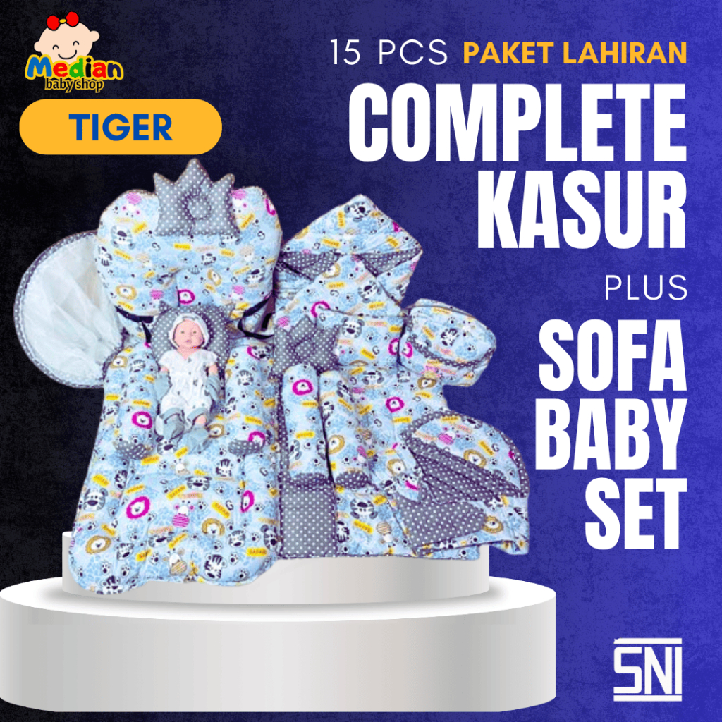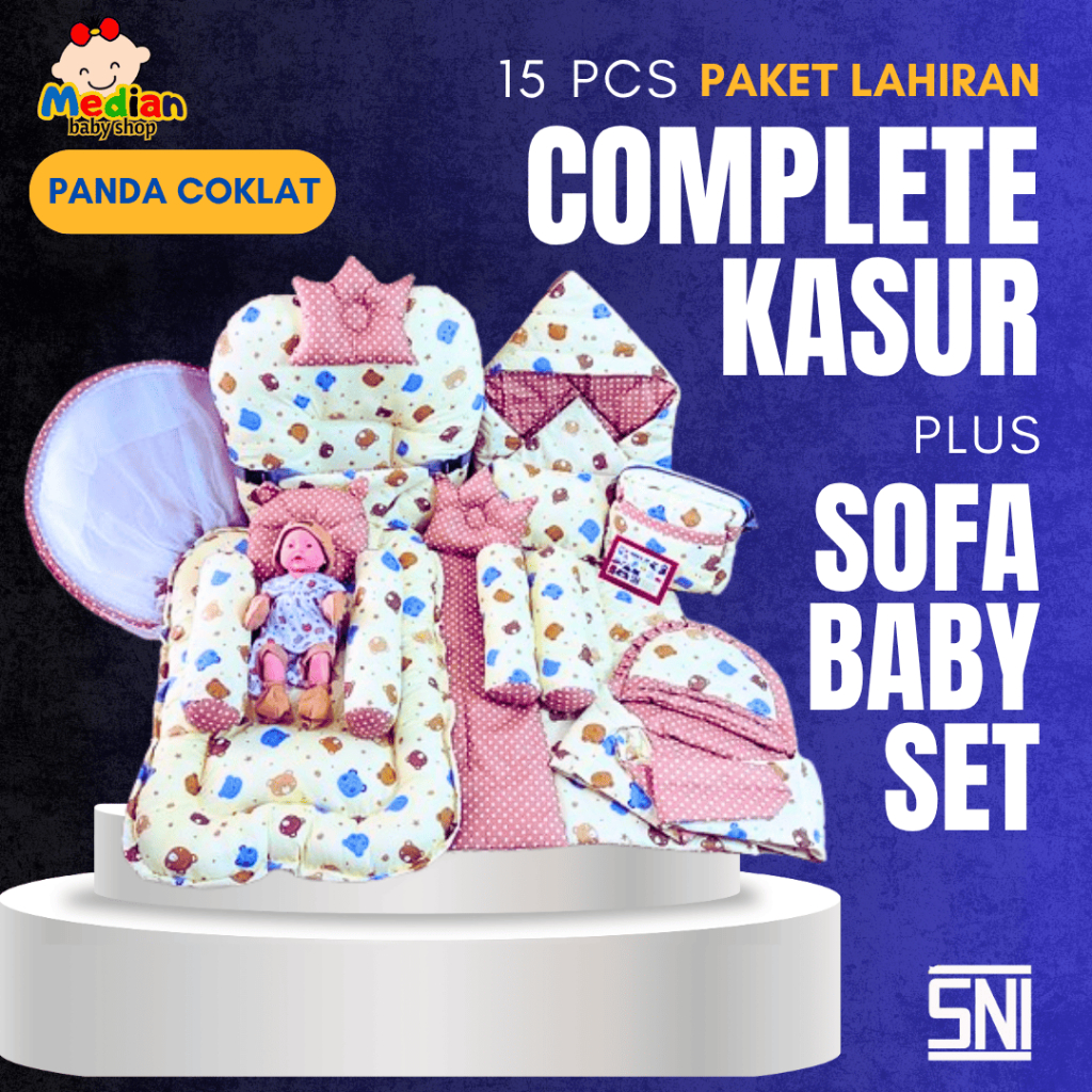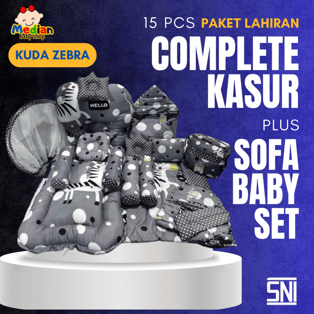 15 PCS Paket lahiran COMPLETE Kasur Kelambu+ Sofa Baby Set Bahan katun adem kado lahiran sudah SNI