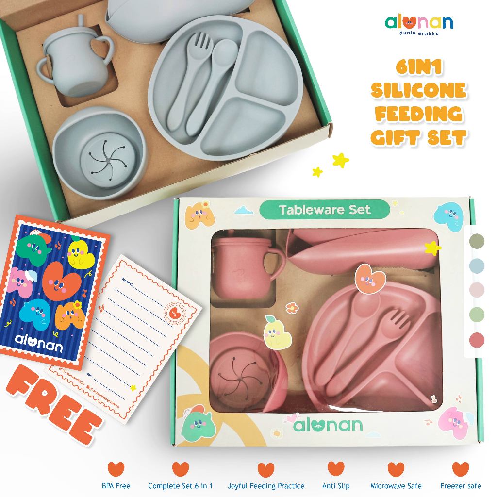 ALUNAN 6in1 Premium Silicone Feeding Gift Set - Perlengkapan Makan Bayi / Kado Newborn Hampers